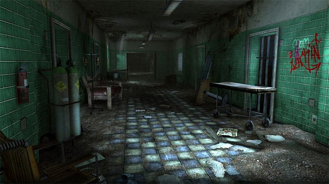 Don’t Show, Suggest: From the start, we didn’t want Lost Within to be a gory game or get scares only through bloody scenes. While there’s certainly some blood in the game, this is presented in the context of the story about the horrible events that occurred in the asylum’s past. We avoided gratuitous bloodshed since we felt that atmosphere and suggestion would create a creepier environment than buckets of blood. Our own vision for scary horror is less “Saw” and more “Silence of the Lambs”; less physical gore, and more psychological terror.Our approach was to use the power of suggestion through using the environment through found documents, graffiti, or objects left in the world. We wanted the player to be an active participant in the story, piecing together their idea of the story based upon what they were told, what they saw, and what was suggested.